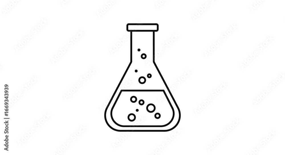 Obraz na plátně A simple line drawing of a laboratory flask with bubbles