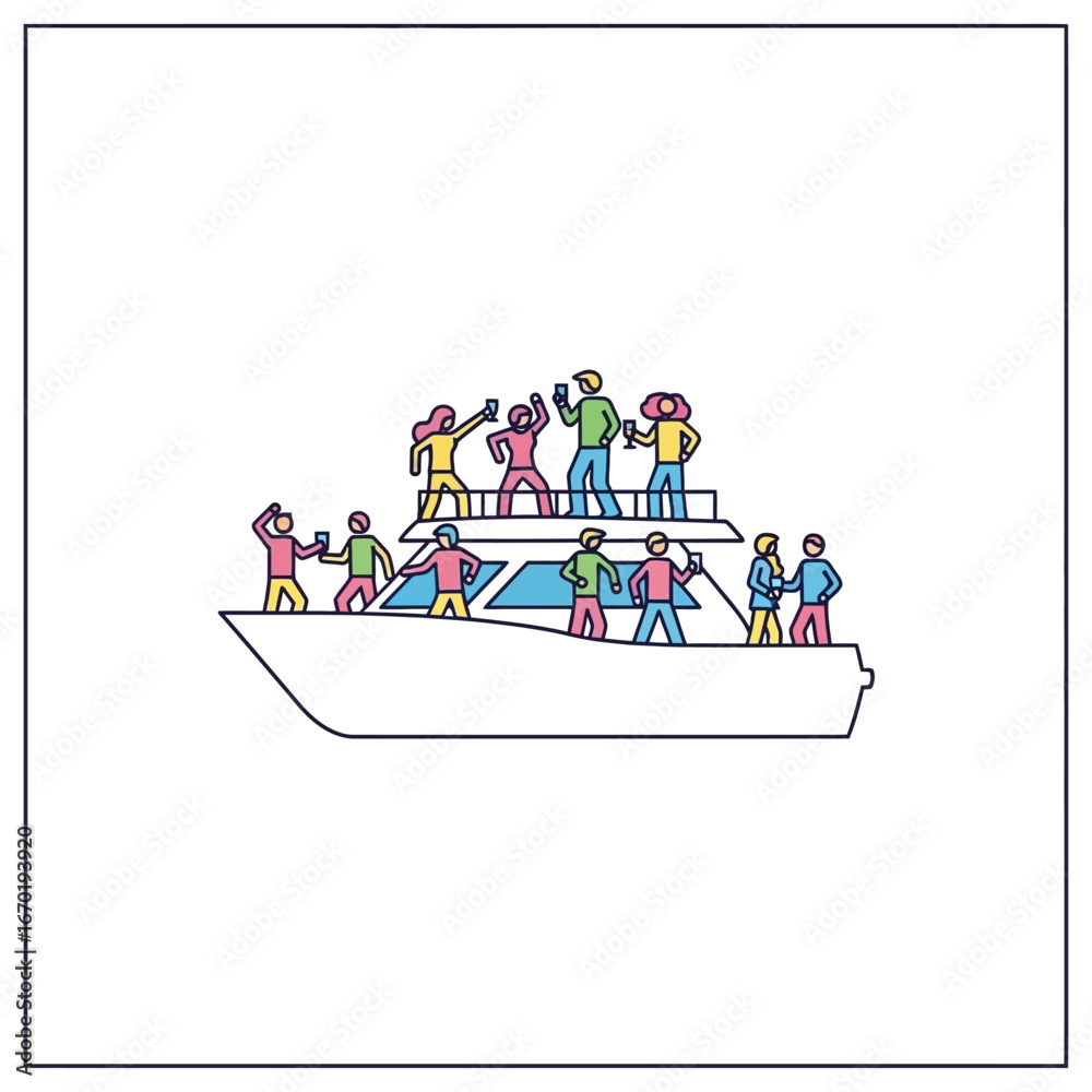 Obraz na plátně People celebrating on a yacht toasting with drinks on a luxury boat party enjoying a cruise at sea for summer vacation and leisure concepts