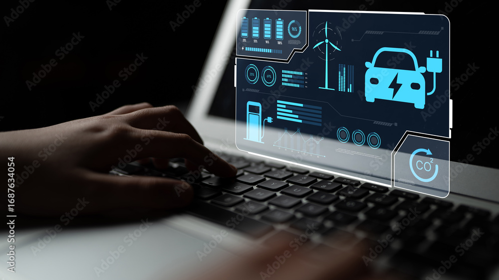 Obraz na plátně Charging dashboard for electric vehicles with battery status, energy usage, rene