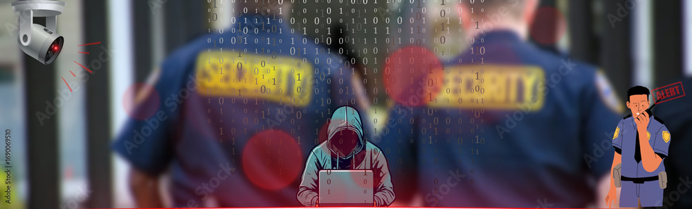 Obraz na plátně An enigmatic digital world is intertwined with physical security, creating a sense of caution