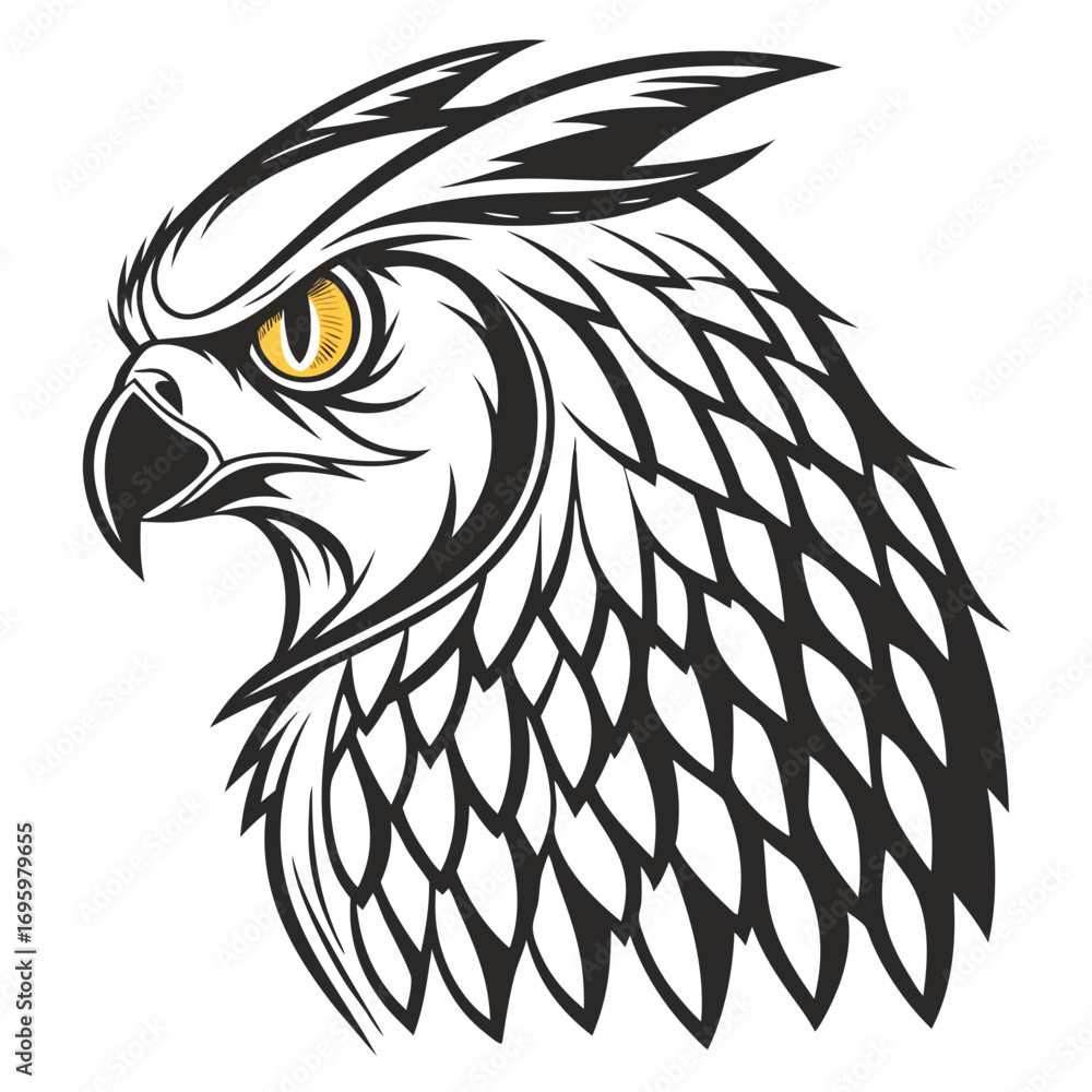 Obraz na plátně Vector art of striking owl head illustration, highlighting sharp features and in