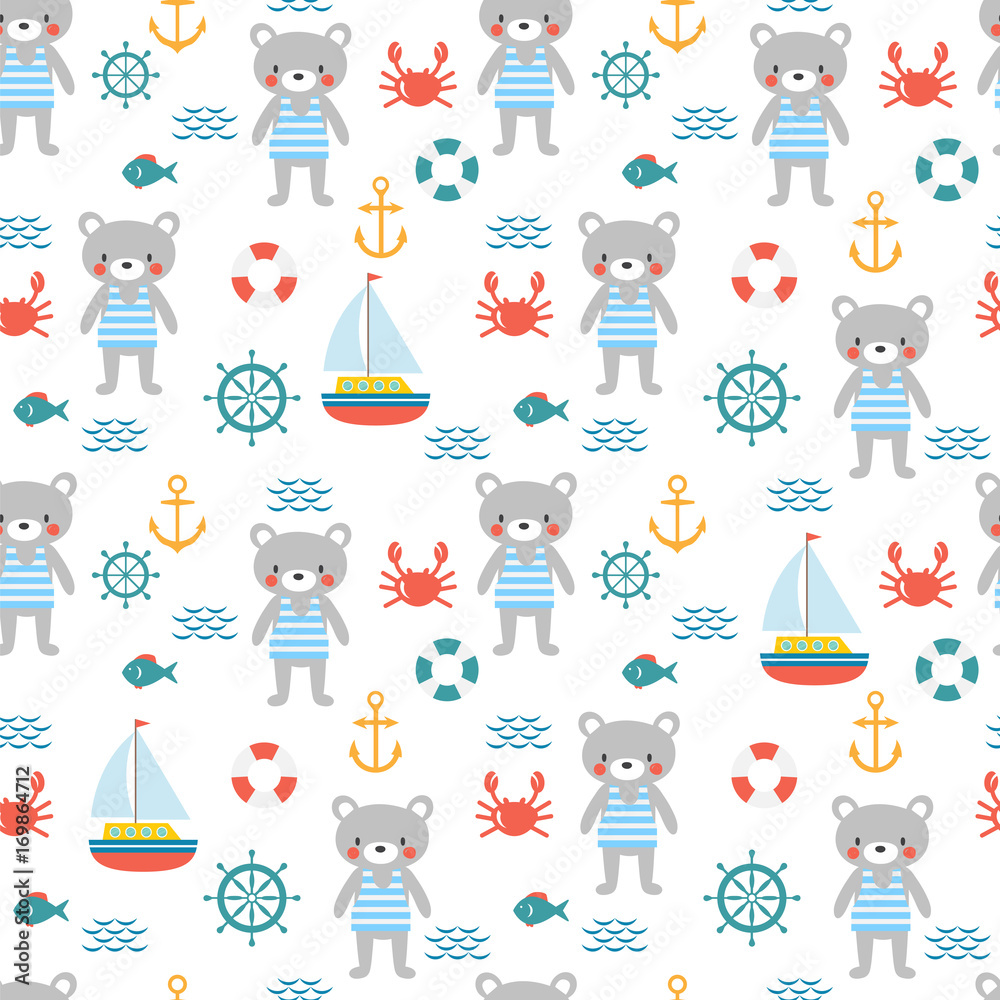 Obraz na plátně Seamless pattern with cute little bear sailor