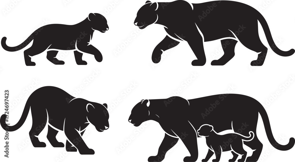 Obraz na plátně Panther Family Silhouette Set Isolated on Transparent Background Wild Cats Vecto