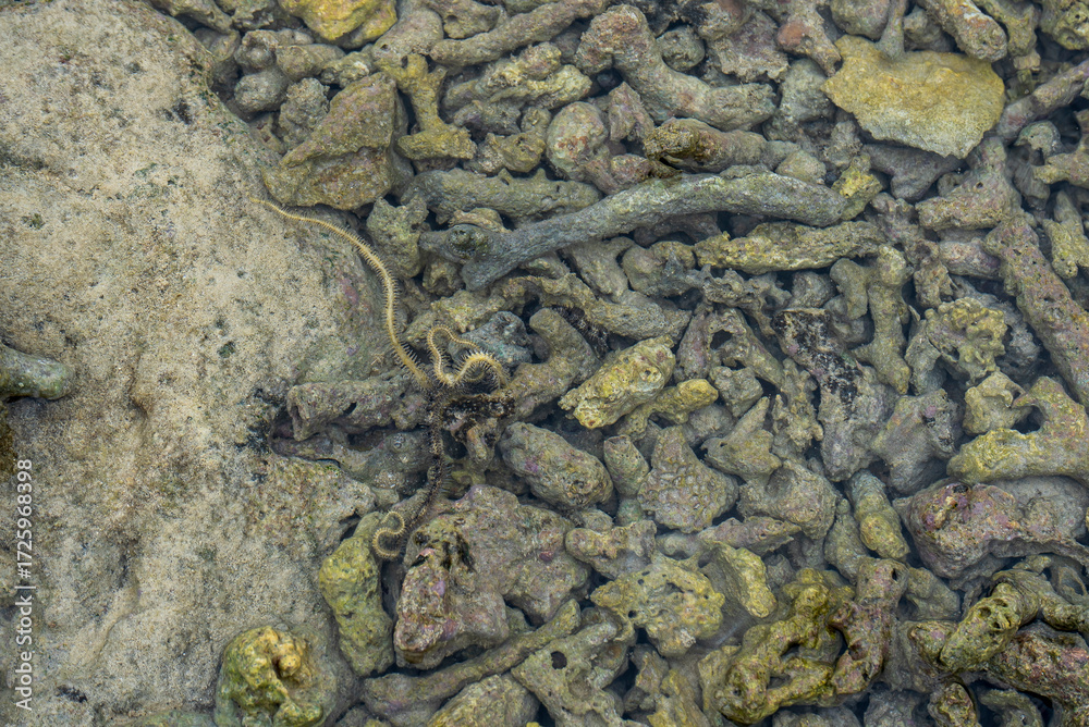 Obraz na plátně Crabs scuttle, hermit crabs shift shells, sea slugs shine with color