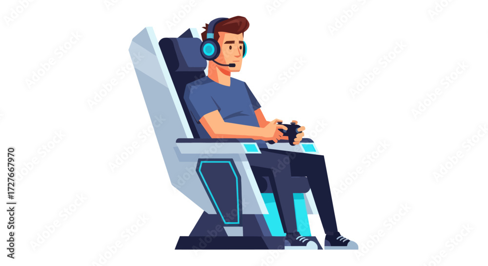 Obraz na plátně Young Man Playing Video Games in Futuristic Gaming Chair.
