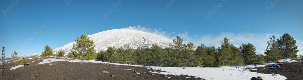 Obraz na plátně Winter Etna Mountains Pano Landscape, Sicily
