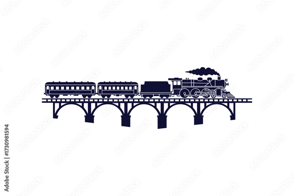 Obraz na plátně Silhouette of a vintage steam train with multiple carriages crossing a tall wood