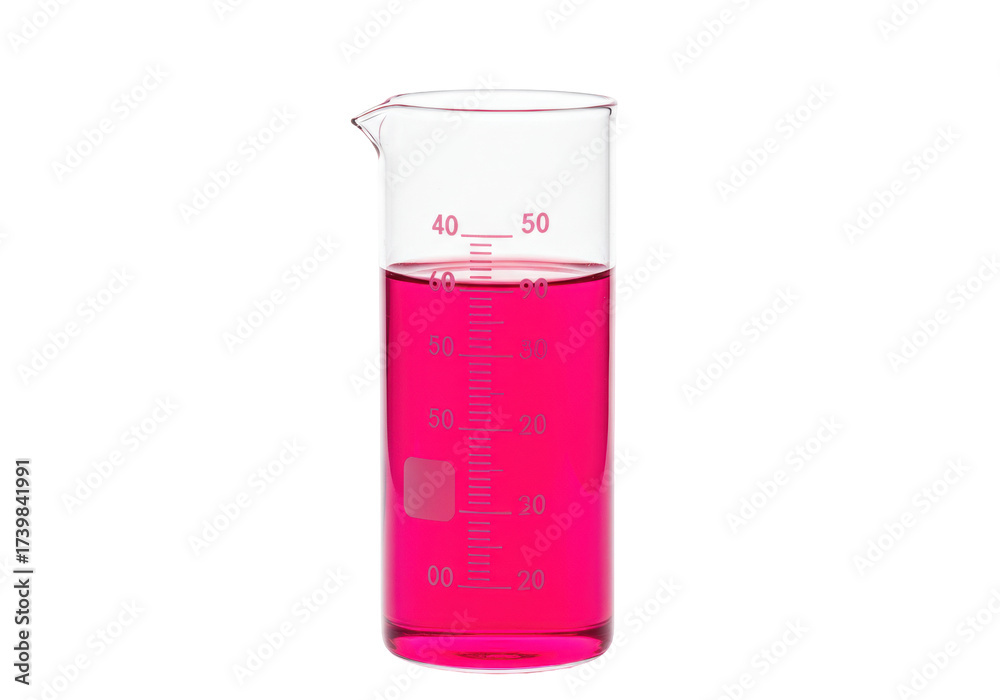 Obraz na plátně Isolated view of a laboratory beaker filled with pink liquid for scientific expe