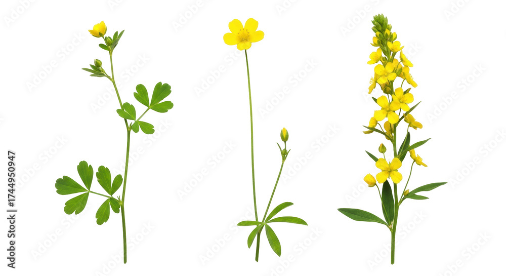 Obraz na plátně Isolated arrangement of three buttercup wildflower stems for botanical design, i