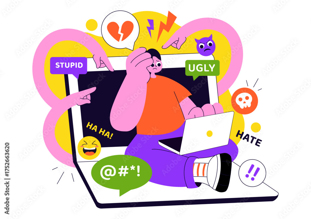 Obraz na plátně Cyberbullying Illustration Featuring Online Harassment, Network Abuse, and Negat
