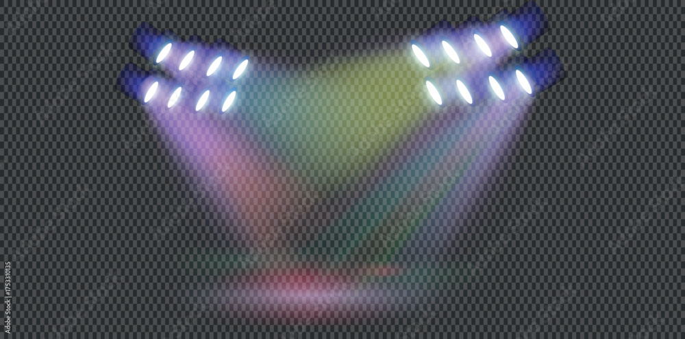 Obraz na plátně Empty Stage with Colorful Lights – Performance or Concert Setup- vector illustra