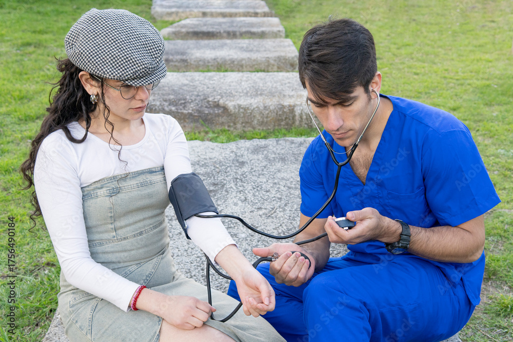 Obraz na plátně Paramedic giving compassionate care to a sick person who needed help quickly