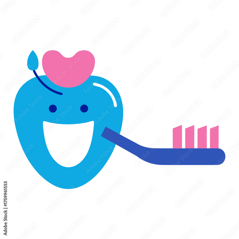 Obraz na plátně Flat dental care vector stepwise tooth brushing illustration icon isolated on wh