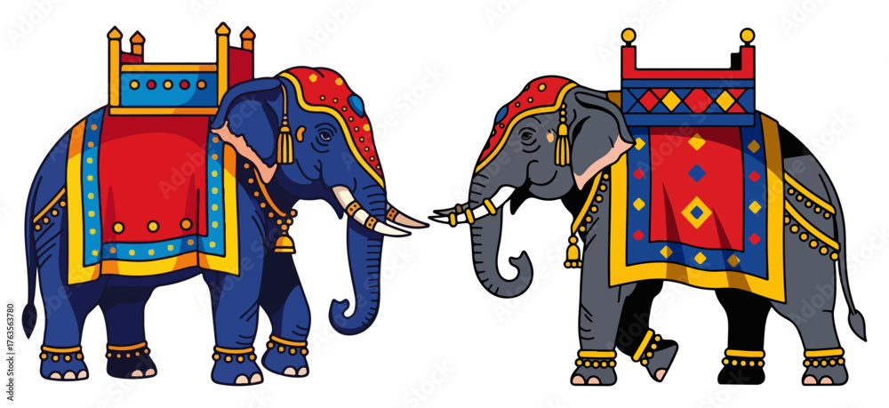 Obraz na plátně Decorated Indian elephants for a traditional festival or royal ceremony