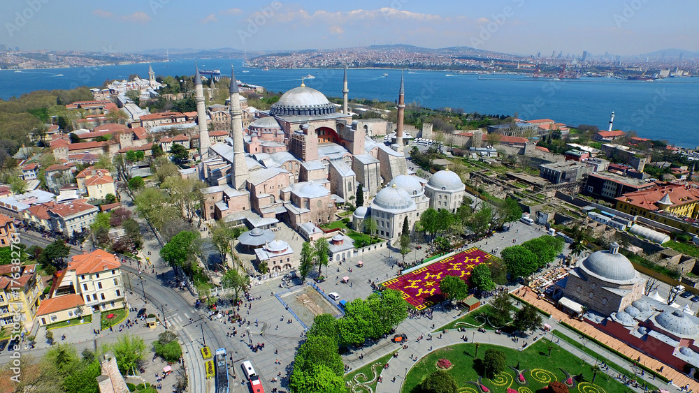 Obraz na plátně Aerial view of the hagia sophia and istanbul