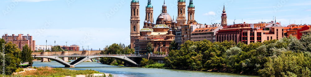 Obraz na plátně Aerial view of Saragossa, Spain with Basilica