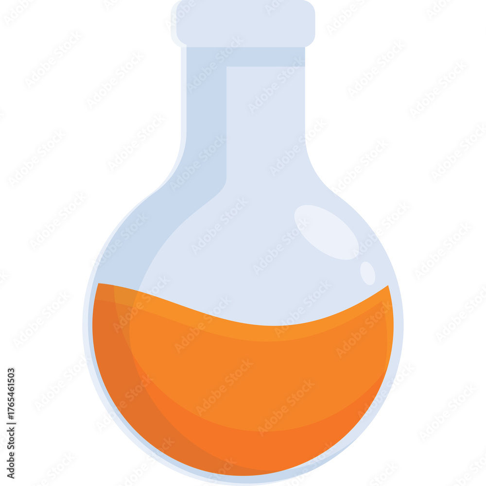 Obraz na plátně A Round Bottom Glass Flask With Orange Liquid Inside and White Stopper on Transp