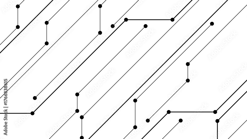 Obraz na plátně Abstract Minimal Circuit Line Pattern — Modern Black and White Geometric Background with Tech-Inspired Lines and Connection Nodes
