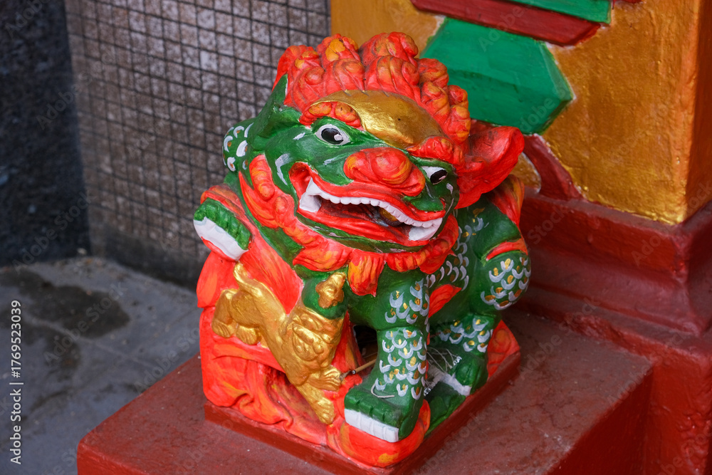 Obraz na plátně Colorful guardian lion statue at the heritage Sin Sze Si Ya Temple, the oldest Chinese temple in Kuala Lumpur, Malaysia