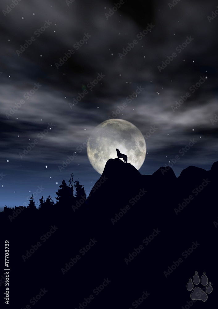 Obraz na plátně Wolf howling in moonlight silhoutte