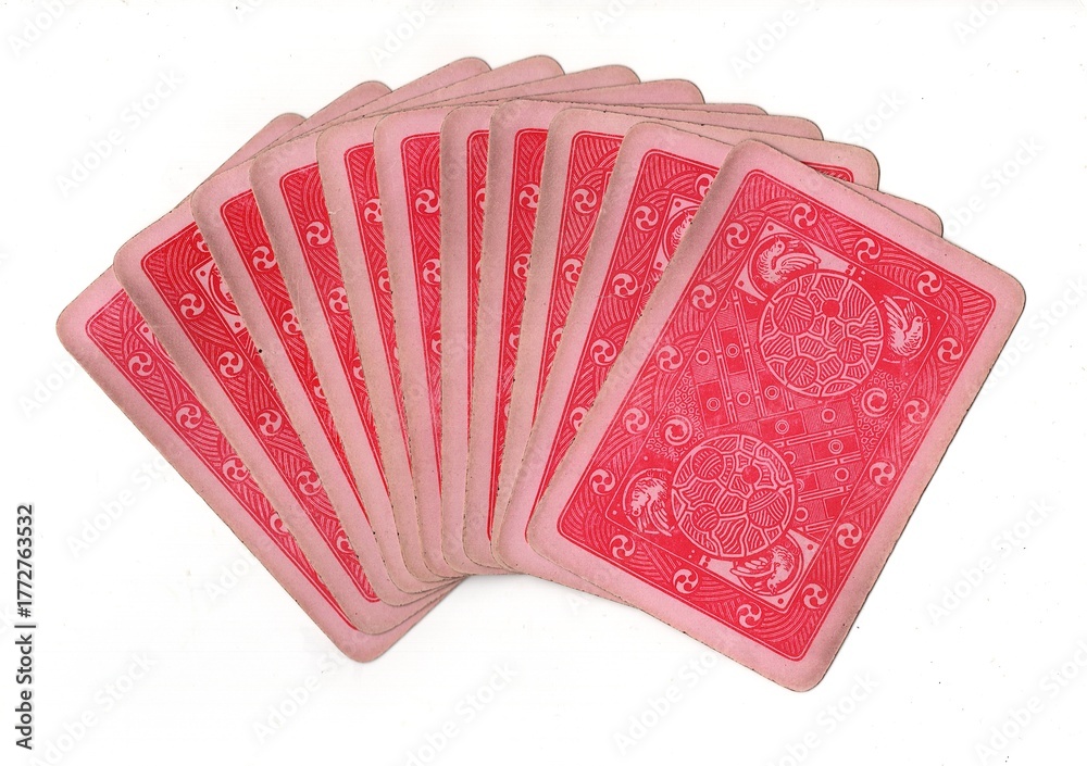 Obraz na plátně A hand of vintage playing card backs isolated on a white background