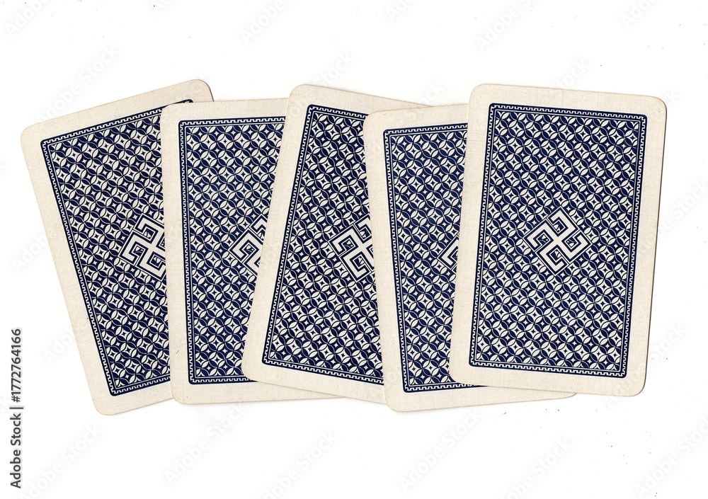 Obraz na plátně A hand of vintage playing card backs isolated on a white background