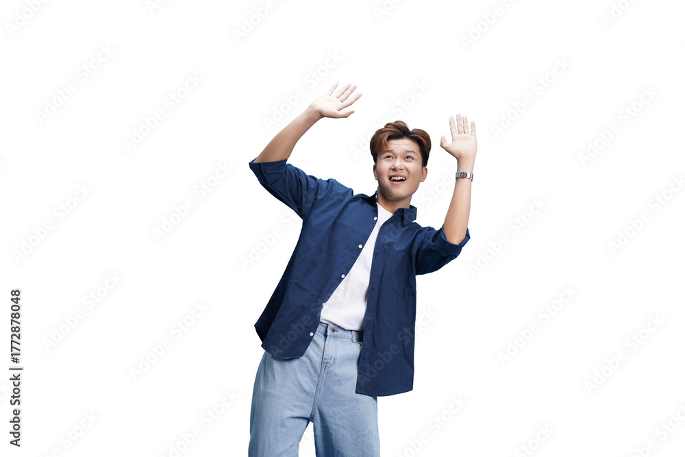 Obraz na plátně Joyful Greetings: Captivating a moment of pure delight, a man extends a warm wave