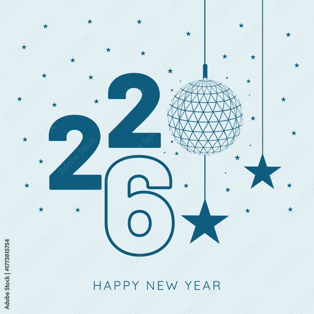 Obraz na plátně Flat blue 2026 New Year Typography on light soothing background