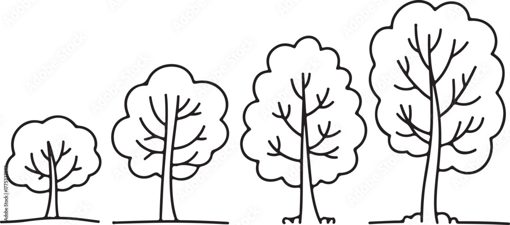 Obraz na plátně Black and White Four Tree Illustration Vector for Coloring Page Design