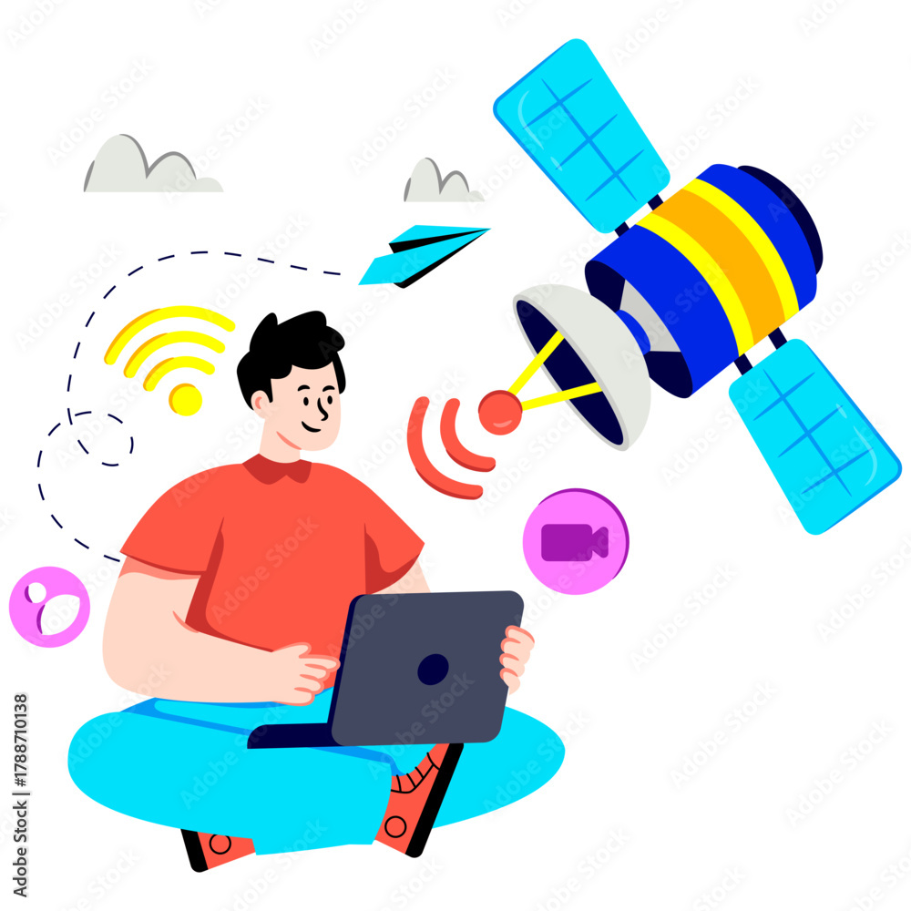 Obraz na plátně Editable design illustration of satellites communication