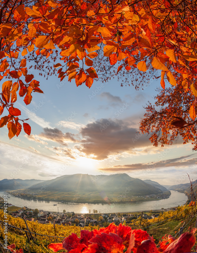 Obraz na plátně Landscape of Wachau valley, Spitz village with Danube river in Austria
