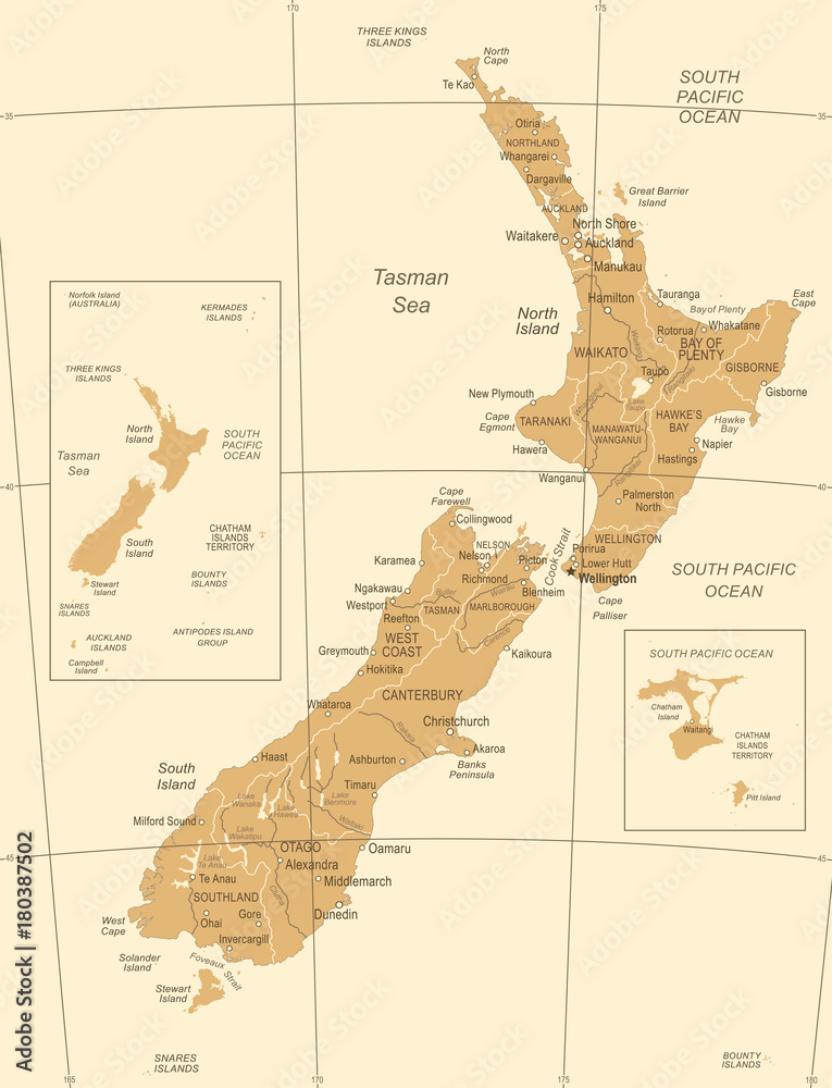 Obraz na plátně New Zealand Map - Vintage Vector Illustration