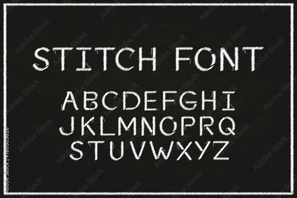 Obraz na plátně Vector realistic embroidery lettering alphabet for decoration and covering on dark background
