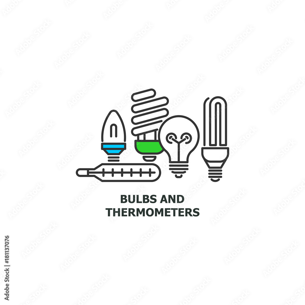 Obraz na plátně Old bulbs and thermometers recycle concept icon in line design, vector flat illu