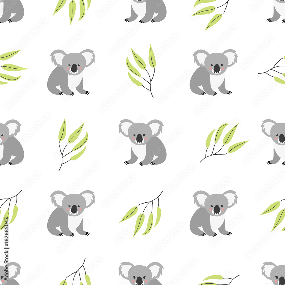 Obraz na plátně Seamless pattern with cute koala bears. Vector background.