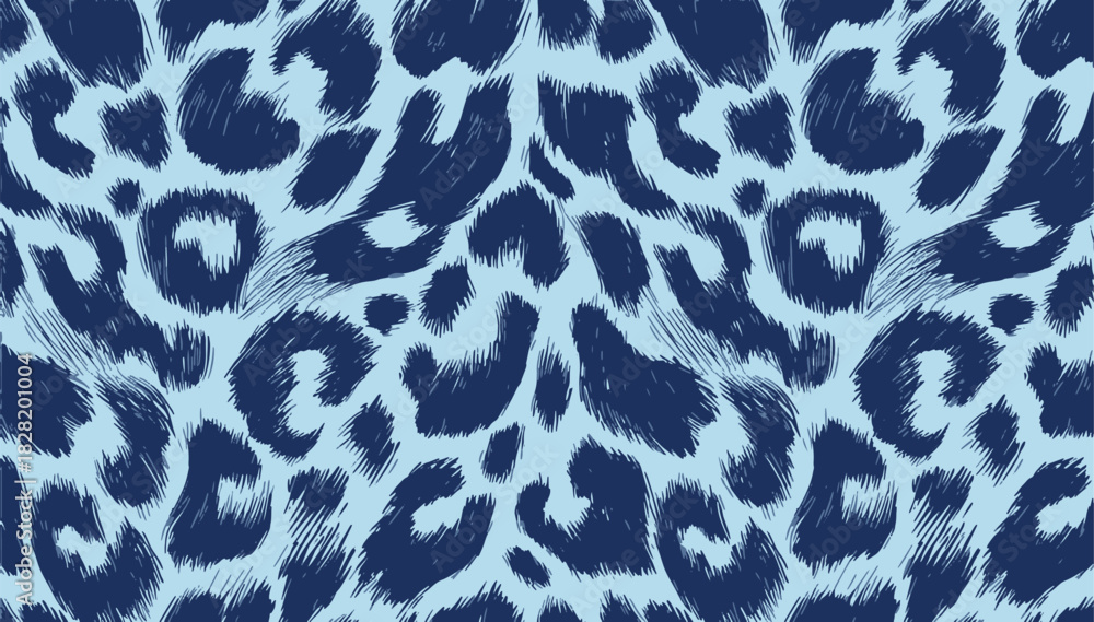 Obraz na plátně Seamless blue leopard pattern featuring bold, hand-drawn animal spots on a light background
