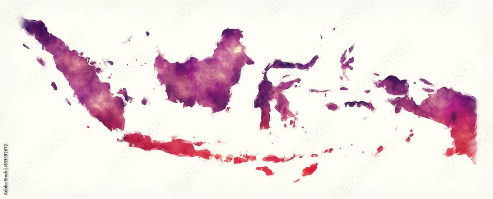 Obraz na plátně Indonesia watercolor map in front of a white background