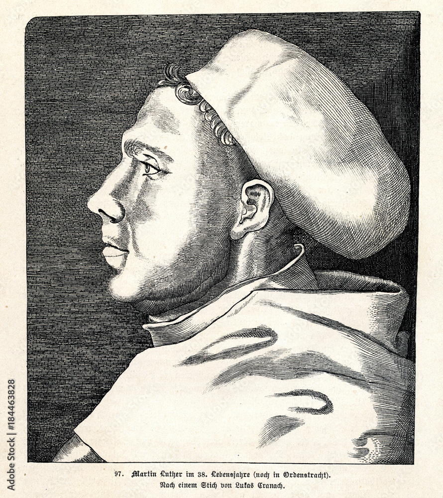 Obraz na plátně Luther as a friar at age 38 by Lucas Cranach the Elder (from Spamers Illustriert