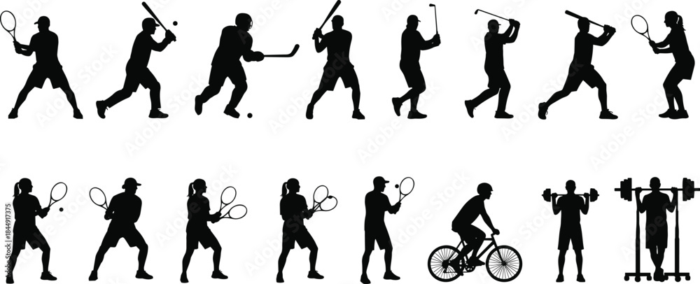 Obraz na plátně Vector Illustrations of People Boxing, Playing Tennis, Golf, Hockey, and Exercis