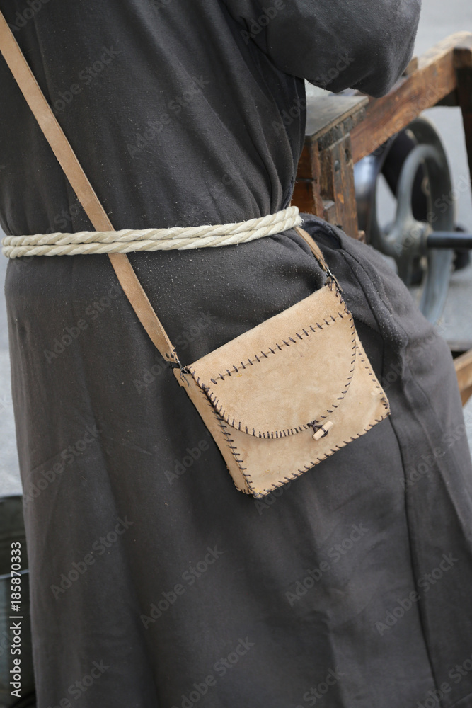 Obraz na plátně friar with leather handbag with and a brown wax in a medieval reenactment