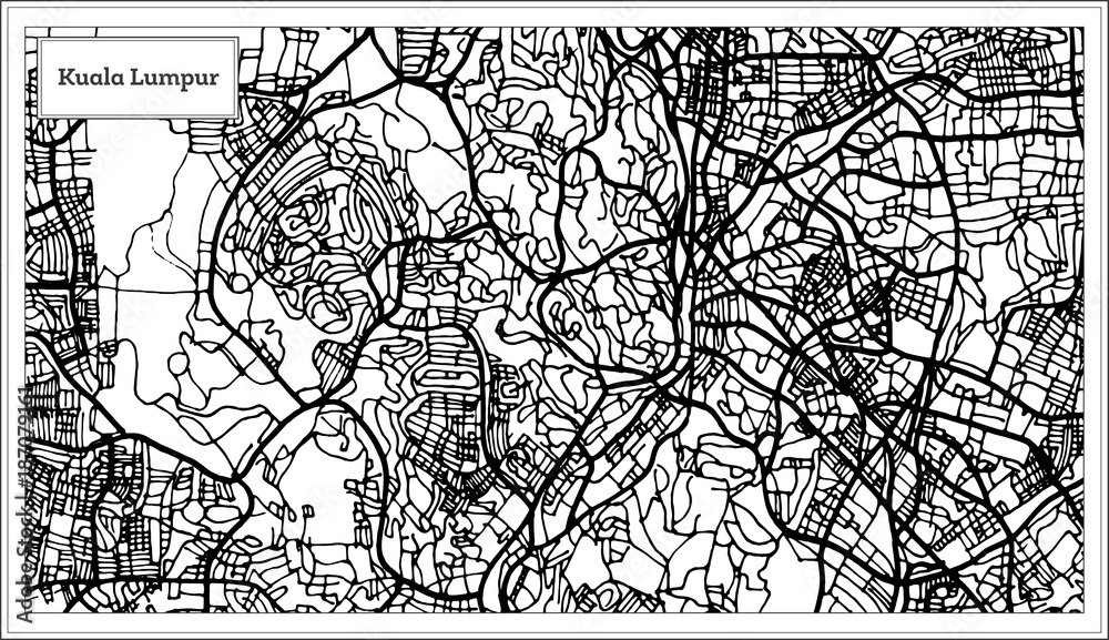 Obraz na plátně Kuala Lumpur Malaysia City Map in Black and White Color.
