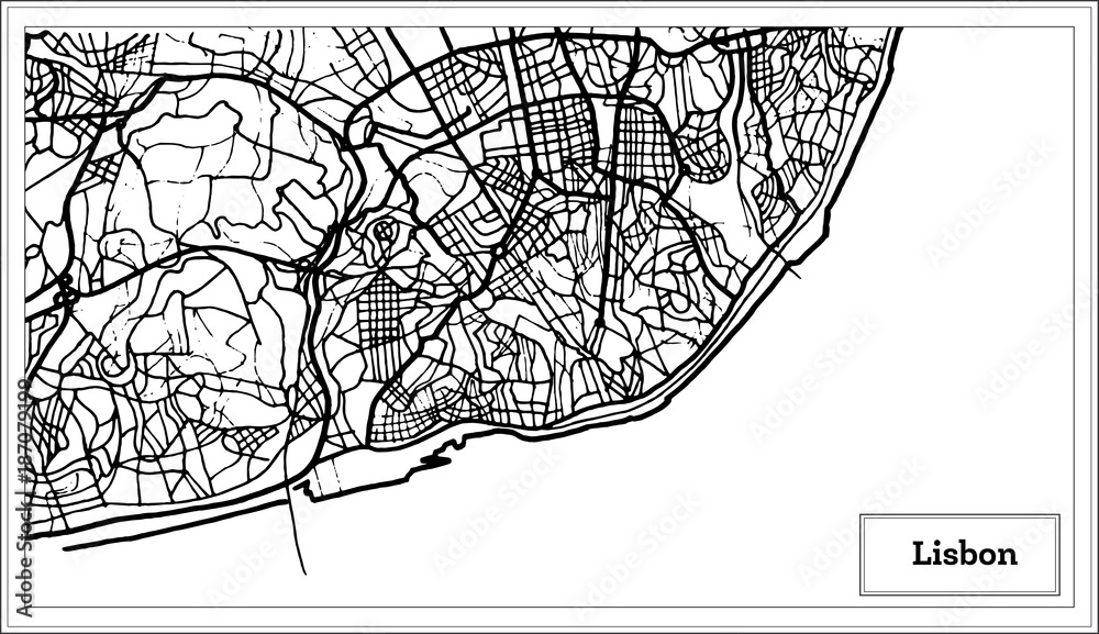 Obraz na plátně Lisbon Portugal Map in Black and White Color.