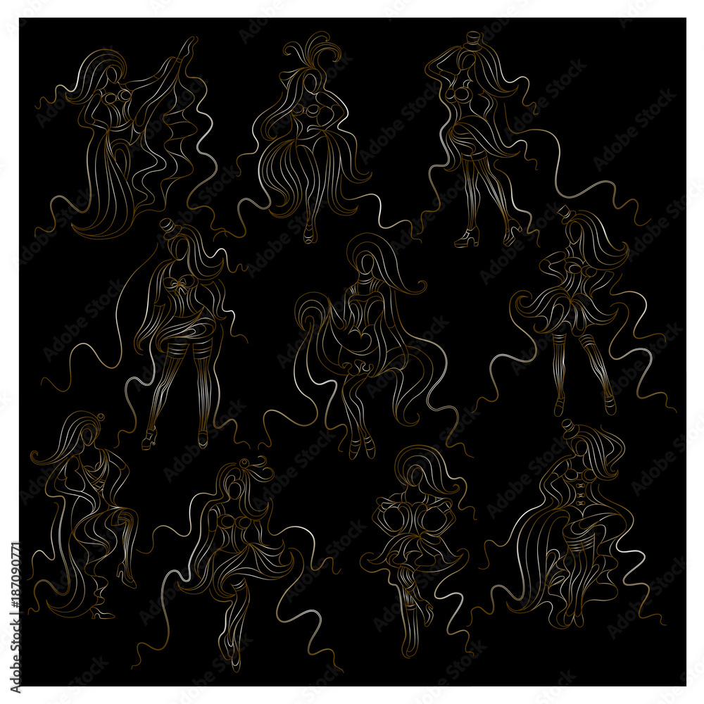 Obraz na plátně Graphical illustration with the cabaret dancer_set 2