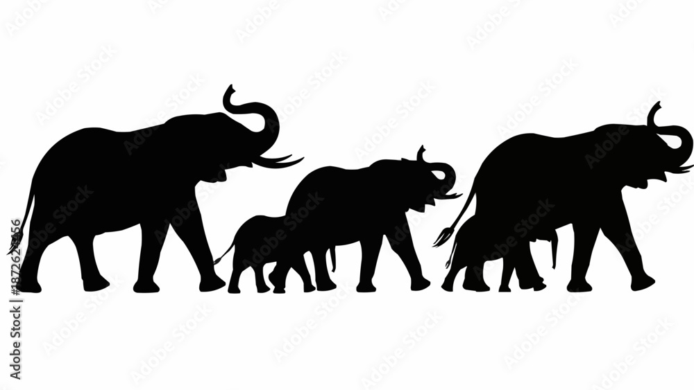 Obraz na plátně Silhouette of a family of elephants walking together.