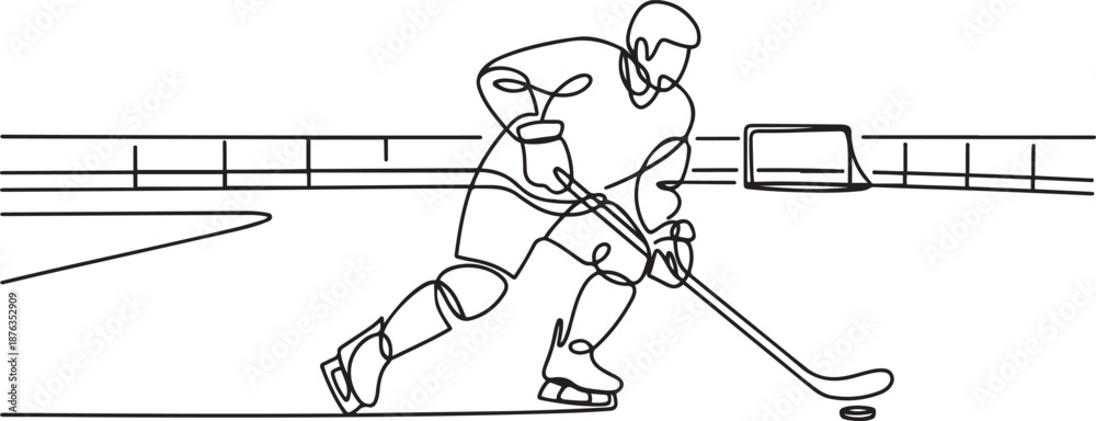 Obraz na plátně One continuous line drawing of young professional ice hockey player exercising and practicing on ice rink stadium