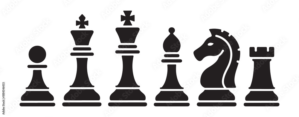 Obraz na plátně Black and white vector illustration of chess pieces set with pawn king queen bis