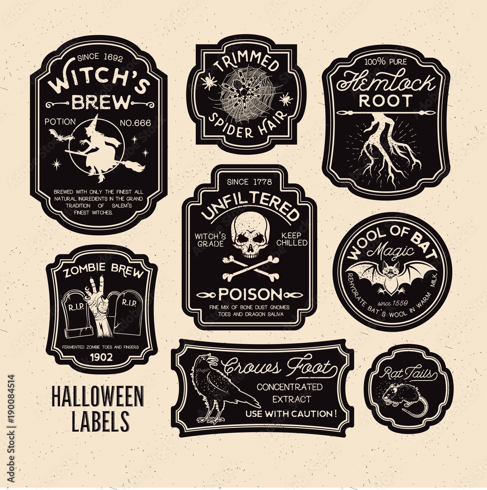 Obraz na plátně Halloween Bottle Labels Potion Labels.