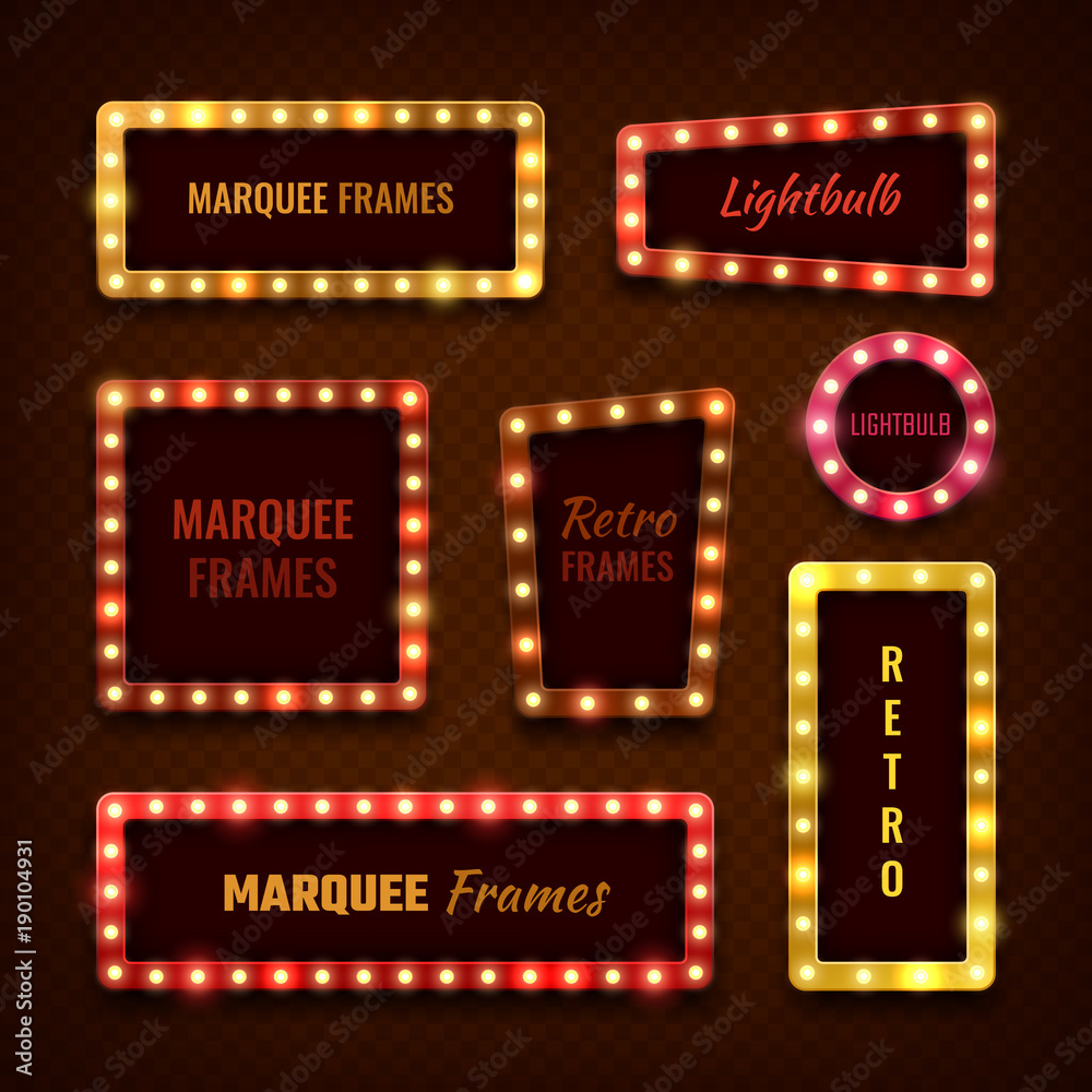 Obraz na plátně Vintage 3d light marquee vegas frames with lightbulbs vector set