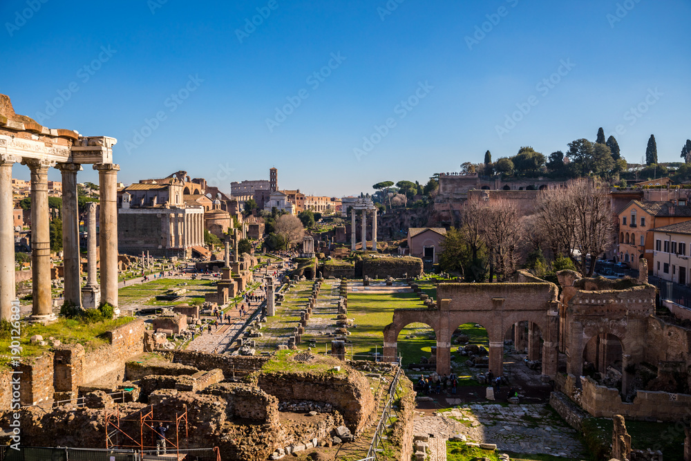 Obraz na plátně Caesar Forum ruins on a sunny day in Rome, Italy