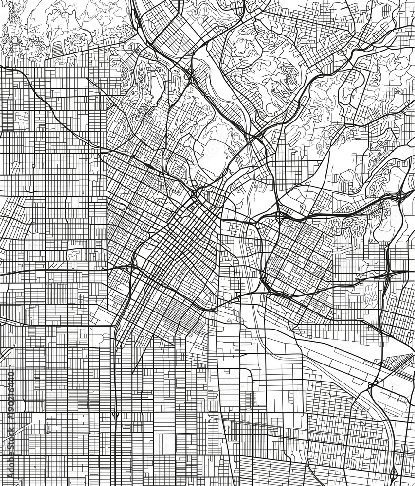 Obraz na plátně Black and white vector city map of Los Angeles with well organized separated layers